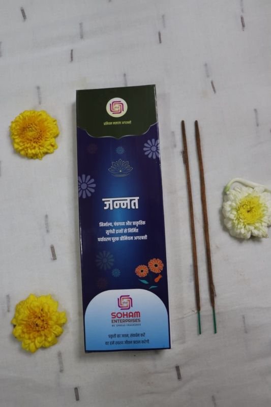 We are a leading Manufacturer and Supplier of premium Jannat Agarbatti Sticks from India. Our high-quality agarbatti sticks come in 8 & 9-inch lengths, packaged in a sturdy Duplex Card Board Box for convenient storage. These stick forms are perfect for home use, emitting a delightful Jannat fragrance that creates a serene atmosphere. Experience the essence of India with our authentic agarbatti sticks, carefully crafted to elevate your spiritual and sensory journey.